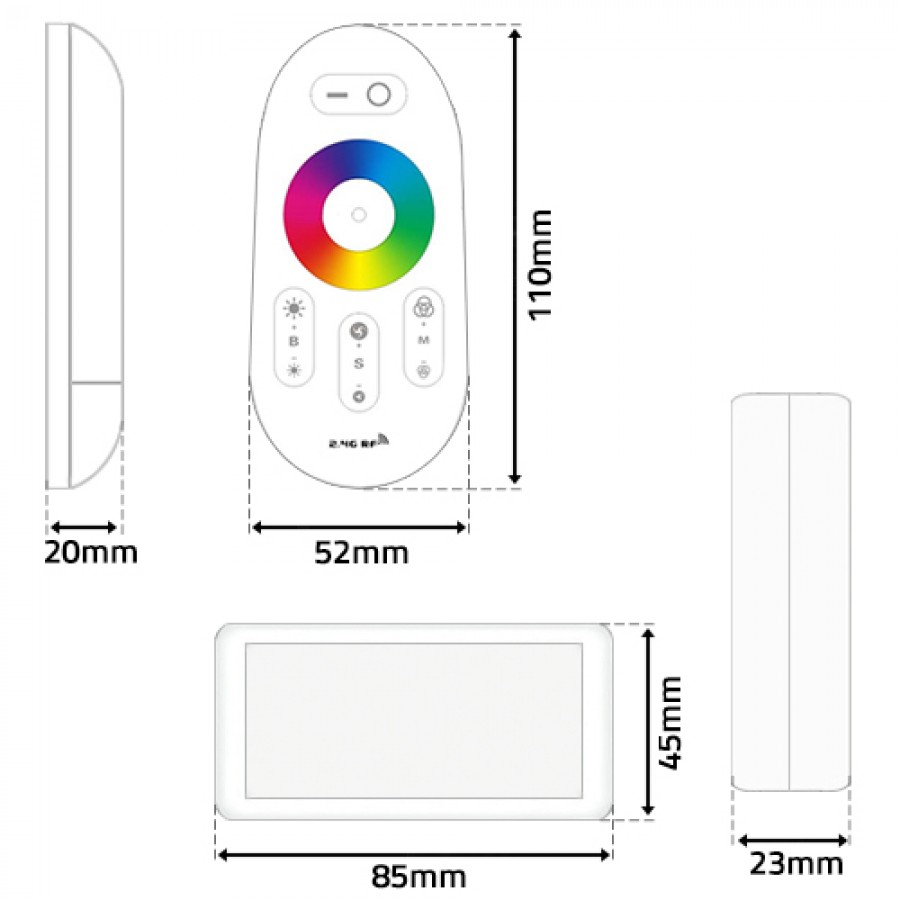 Controlador RGBW + Comando RF TOUCH para Fitas LED RGB e RGBW 12Vdc e 24Vdc.