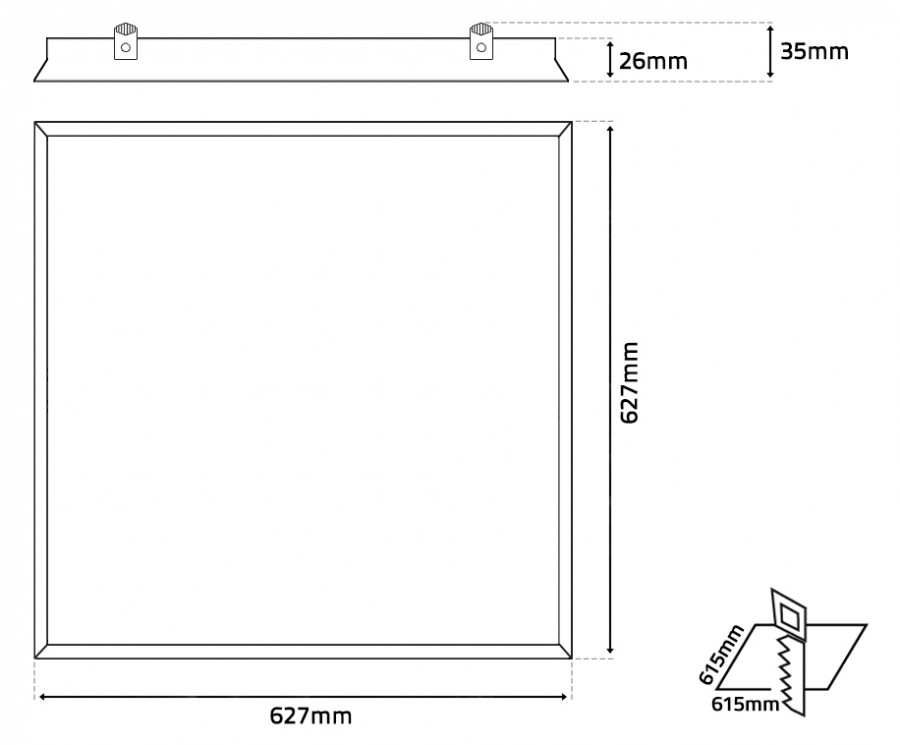 627mm x 627mm x 35mm -