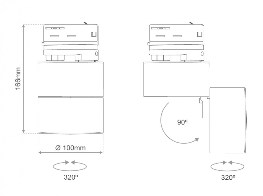 Tracklight LED de CCT alternável (2700K + 4000K + 6000K) através de interruptor deslizante.
