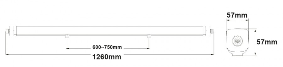 1260mm x 57mm x 57mm -