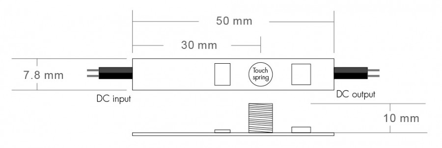 Interruptor Dimmer Tátil (para Fita LED Monocor) de 1 canal para aplicação em perfis de alumínio.