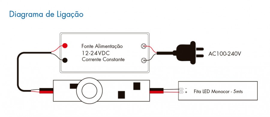 Sensor de movimento PIR, conecta diretamente à Fita LED de baixa tensão.