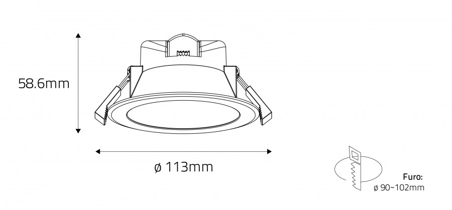 Downlight versátil e de alto desempenho, ideal para ambientes interiores.