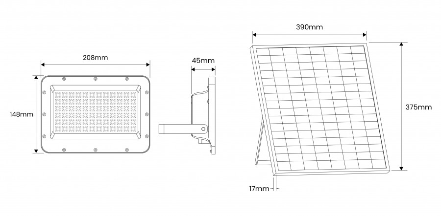 Estes projetores incluem um modulo LED com bateria de lítio integrada, painel solar monocristalino e controle remoto.